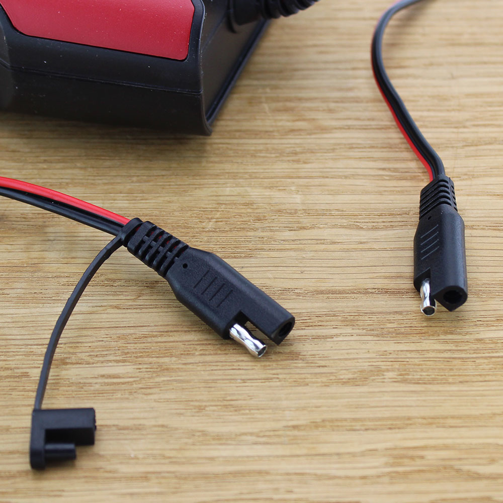 Bij de lader worden snoeren met accuklemmen (ook wel krokodillenklemmen genoemd) geleverd en tevens de zogenaamde eyelets waarmee u een vaste verbinding kunt maken op de accupolen. De lader is vervolgens gemakkelijk aan en af te koppelen met een snelkoppeling.