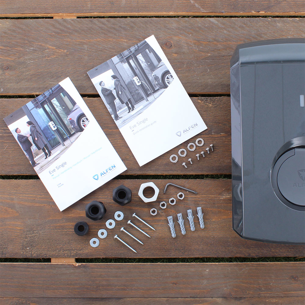 T.b.v. de montage van de lader worden kabelwartels, schroeven en pluggen meegeleverd.