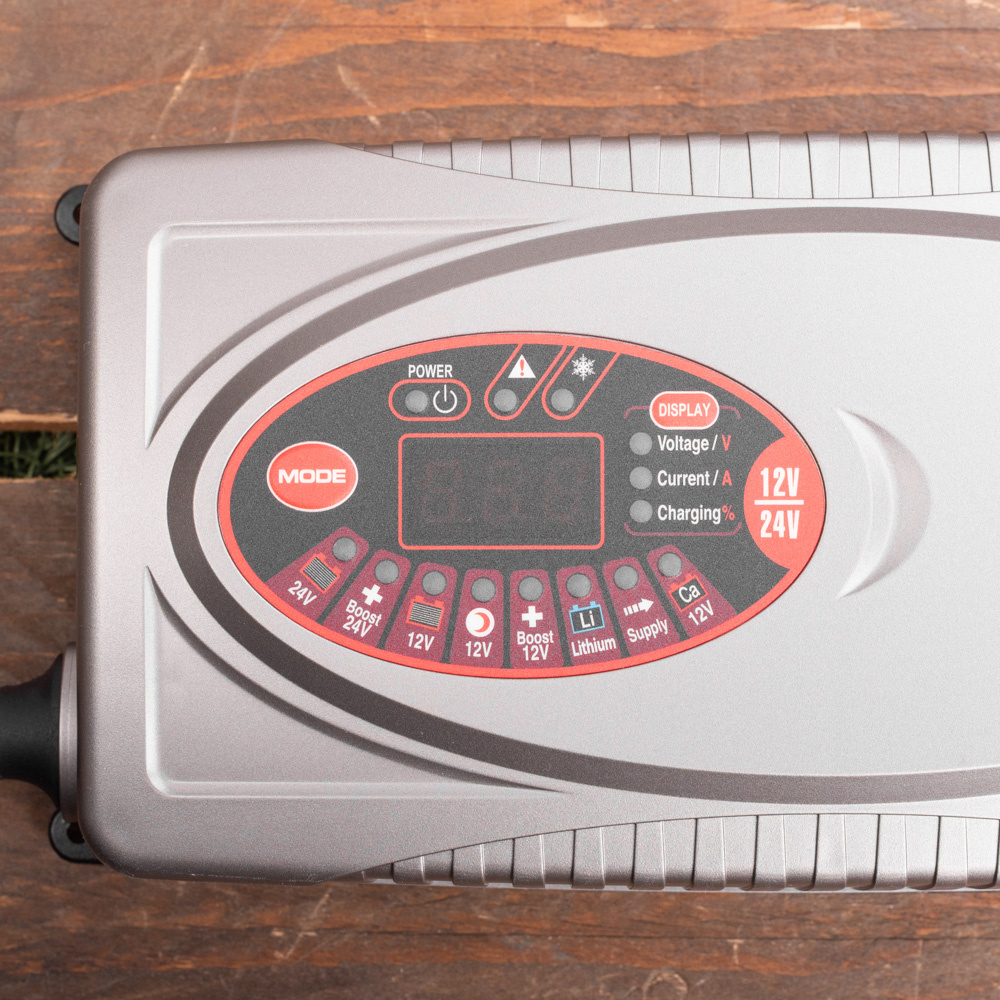 Deze eenvoudige acculader voor thuis heeft een display voor de laadstatus van de accu. Ook kunt u via de display verschillende modus kiezen.