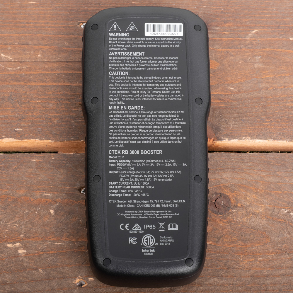 CTEK biedt 2 jaar garantie op de RB 3000 booster.