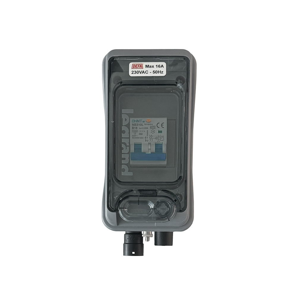 Met deze DEFA installatieautomaat EI Central van 16A met 1 ingang en 1 uitgang kunt u een nette en veilige aansluiting maken in uw DEFA AC systeem. De EI-central wordt geleverd met een aardingsdraad van enkele meters lang.