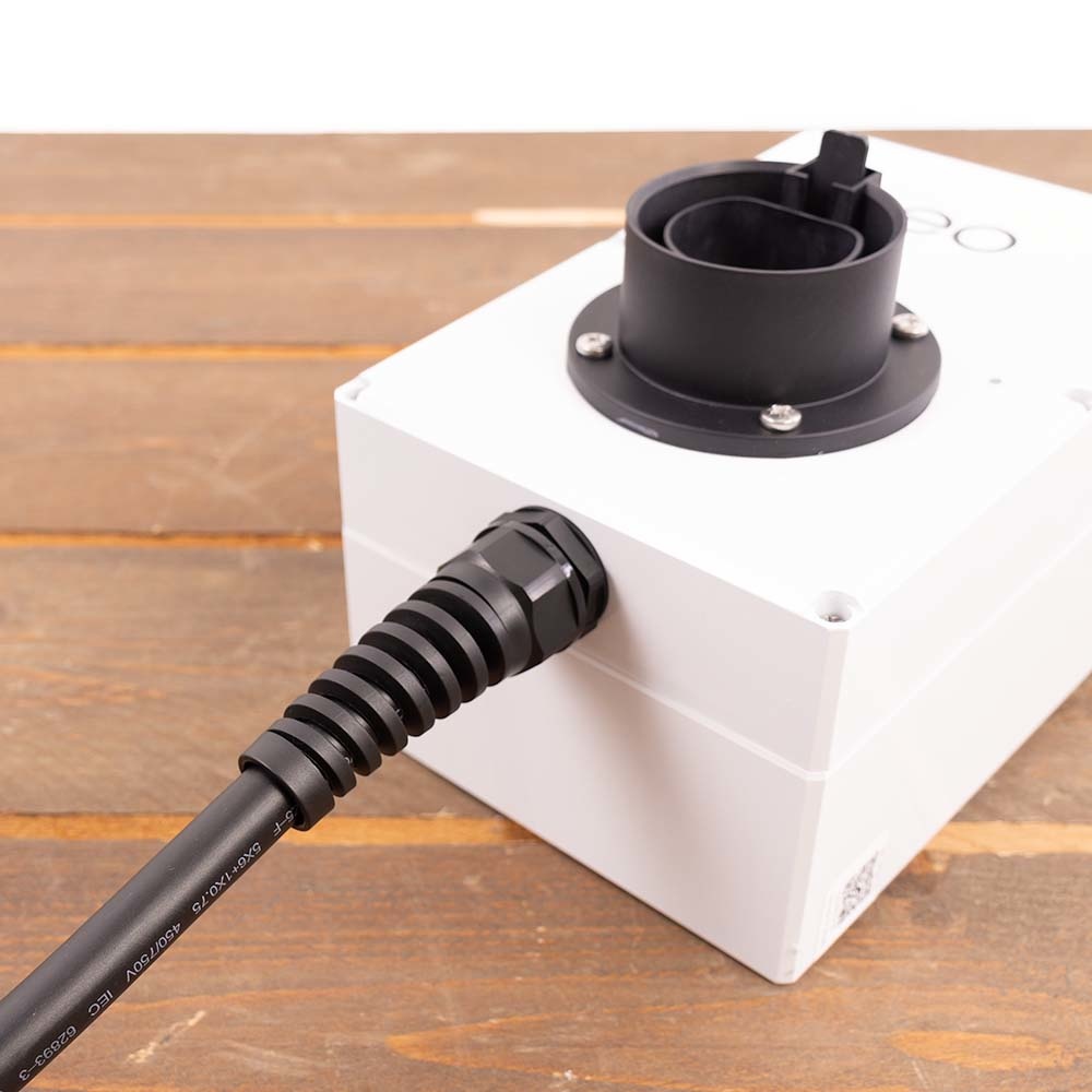 Dit laadstation heeft een 5 meter lange vaste laadkabel van het type 2. Het voordeel daarvan is dat u geen kabel uit uw auto hoeft te pakken en direct kunt laden als u aankomt. U kunt met deze lader dus alleen auto's laden die een type 2 in gang hebben aan de zijde van de auto.