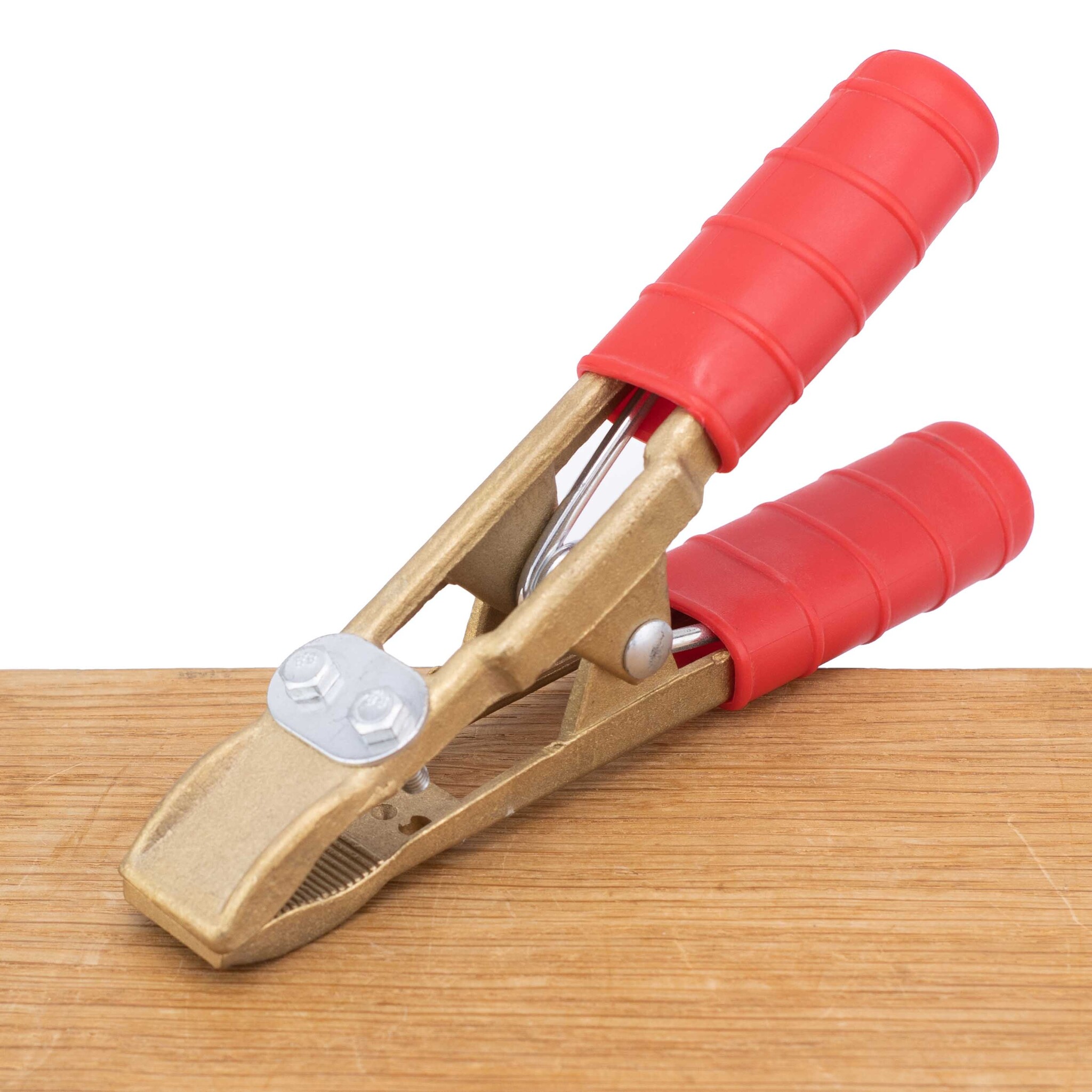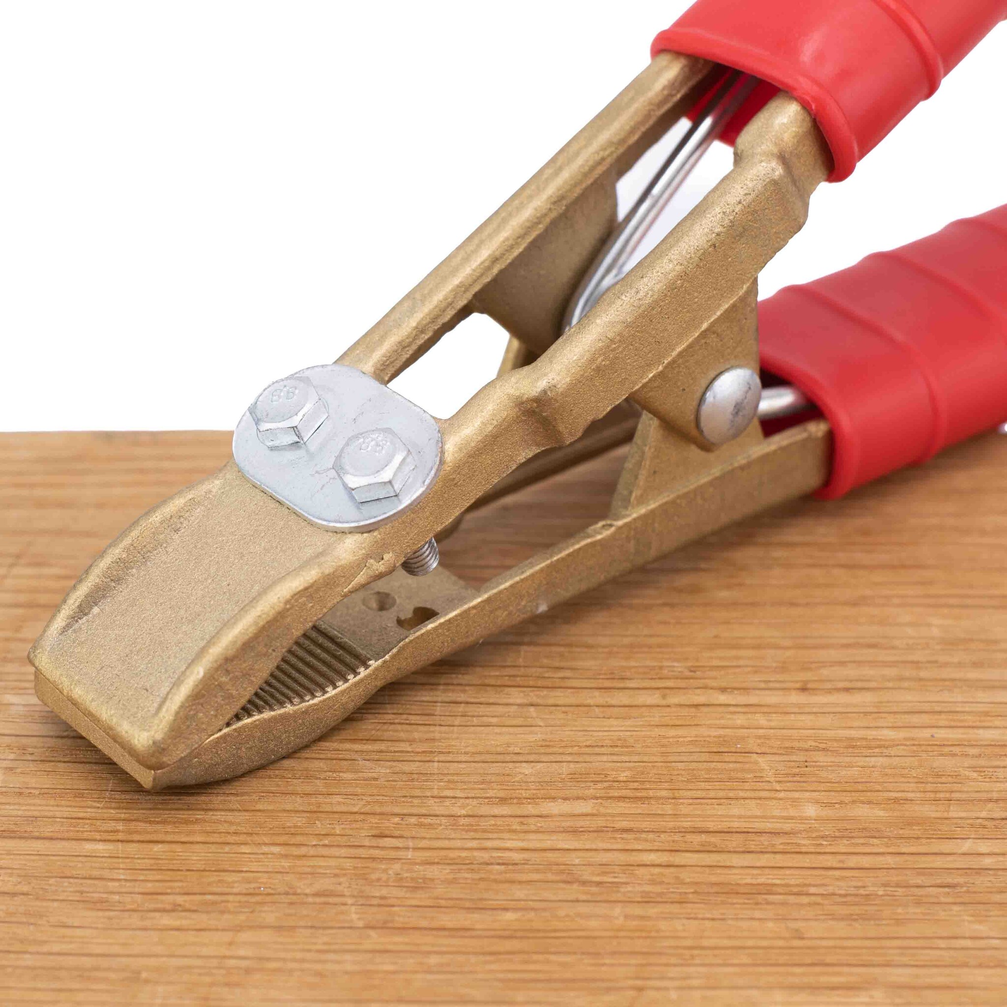 Accuklem 300A: deze GYS oplaadklem is geschikt voor een piekstroom van 300A en een 100% belasting van 200A. Doorsnede: 25 mm2. Maximale afstand tussen de geopende klemmen: 45 mm. Kleur: rood. Ook verkrijgbaar in het zwart.