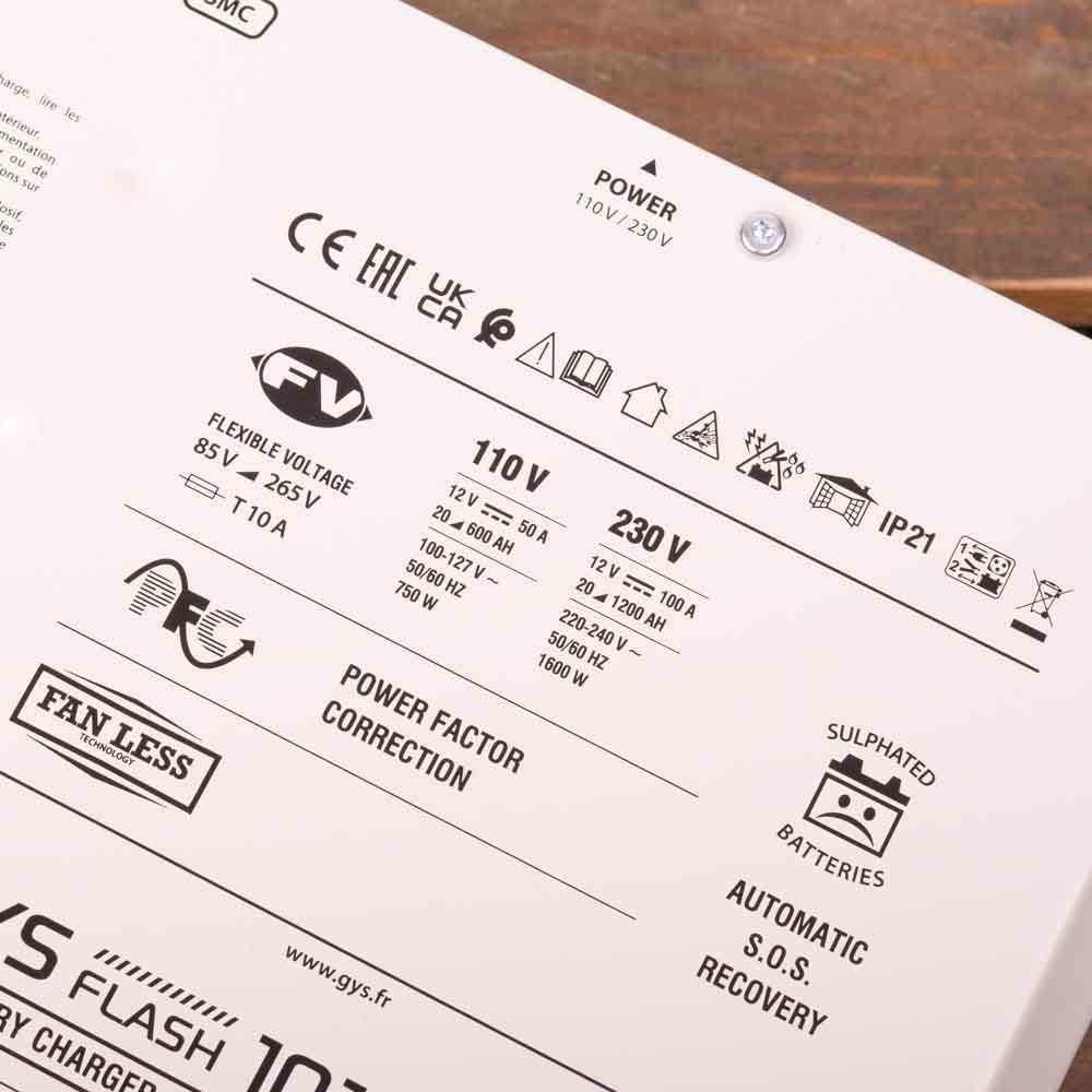GYS acculader met voeding GYSFLASH 101.12 CNT | USB / SMC | 100A | 2.5M kabels