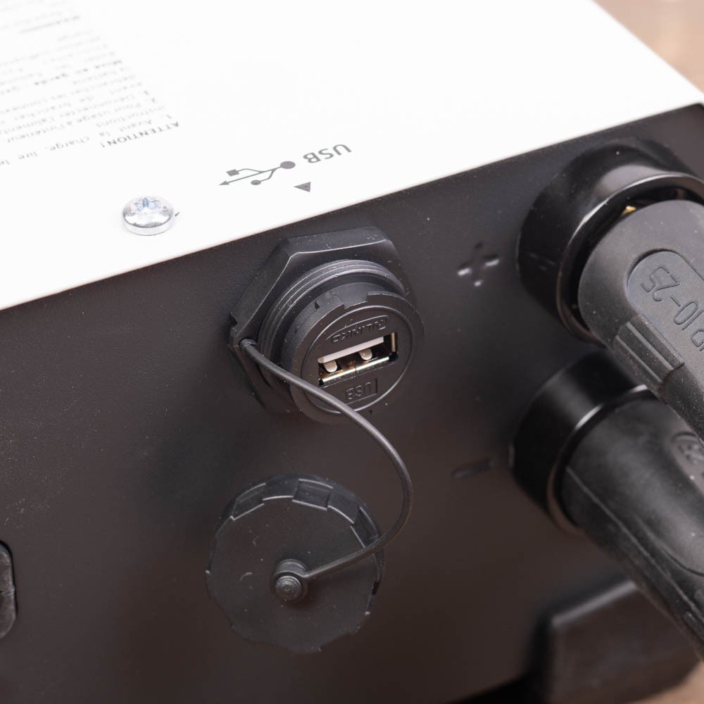 Dit apparaat is beveiligd tegen kortsluiting, ompoling en overladen. Dit draagt ook bij aan de bescherming en levensduur van de elektronica van het voertuig. Hetzelfde geldt voor de temperatuursensor, die interne elektronica tegen oververhitting beveiligt. Deze GYS (isolatieklasse IP20) heeft verder een anti-vonk systeem en heeft een 150A zekering.