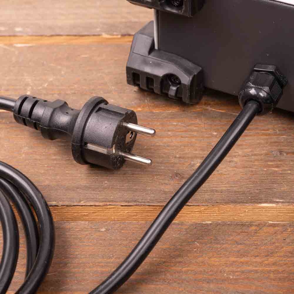 - Schokbestendige behuizing, compact en robuust, met kabelhouder aan de voorzijde.