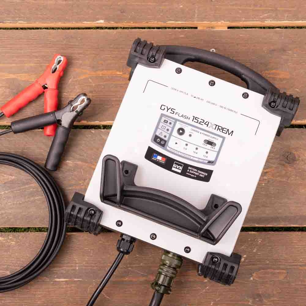 De lader is schokbestendig en beveiligd tegen opspattende deeltjes en vloeistoffen (Veiligheidsgraad: IP65). De GYSFLASH 15.24 Xtrem is geschikt voor het opladen van 12 V en 24 V loodzuur accu’s, en beschikt over een stabiele laadstroom tot 15 A (bij 40 graden Celcius). De GYSFLASH 15.24 Xtrem is ruim voldoende voor het laden en onderhouden van accu's van de meeste voertuigen, zoals bouwvoertuigen, vrachtauto’s, tanks, auto’s, trekkers en meer.