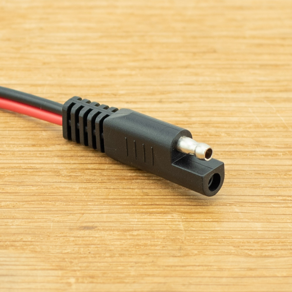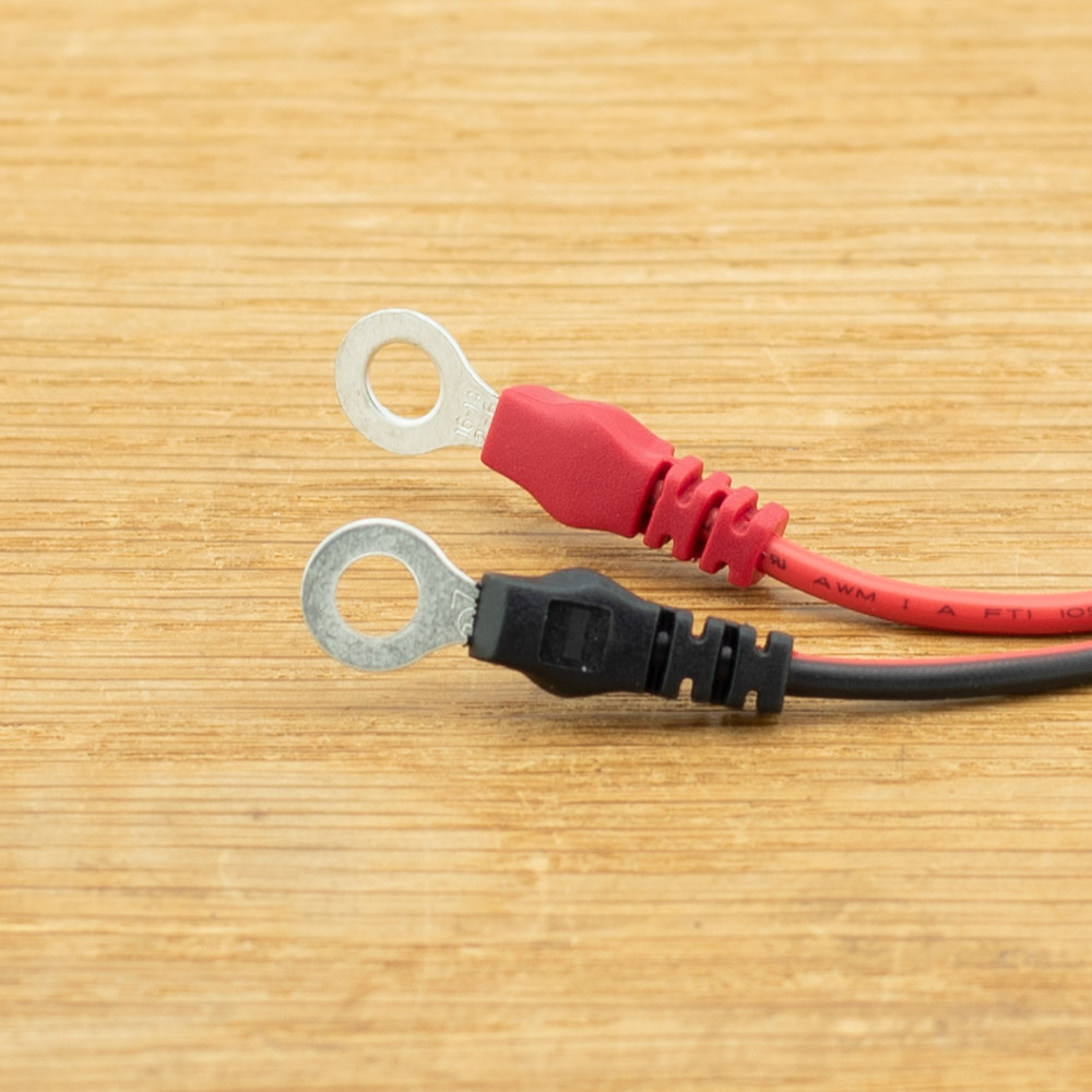 Deze GYS kabel heeft aan de ene zijde een SAE connectie en aan de andere zijde eyelets (M6: diameter 6mm dus).