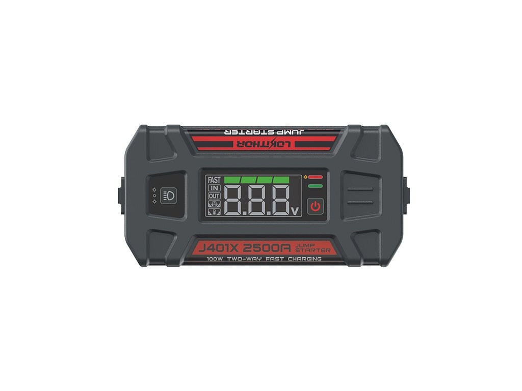 De Lokithor J401X Jumpstarter 2500A is een compacte, handige starthulp en powerbank in één. U kunt prima uw motor, auto en bus starten met deze J401X. U kunt ook telefoons, iPads, fototoestellen en laptops opladen.