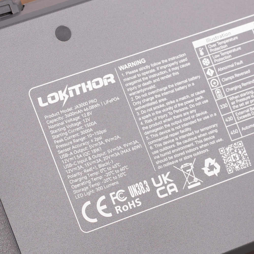 Uw Lokithor JA302 Pro is tevens een powerbank waarmee u vele apparaten kunt opladen van telefoons, iPads tot fototoestellen en laptops. Met de 12V output heeft u zelfs stroomtoevoer voor 12V apparaten (tot 3A). De startboost functie voor 12V systemen geeft 2000A aan startvermogen met maar liefst een piekvermogen van 3000A.