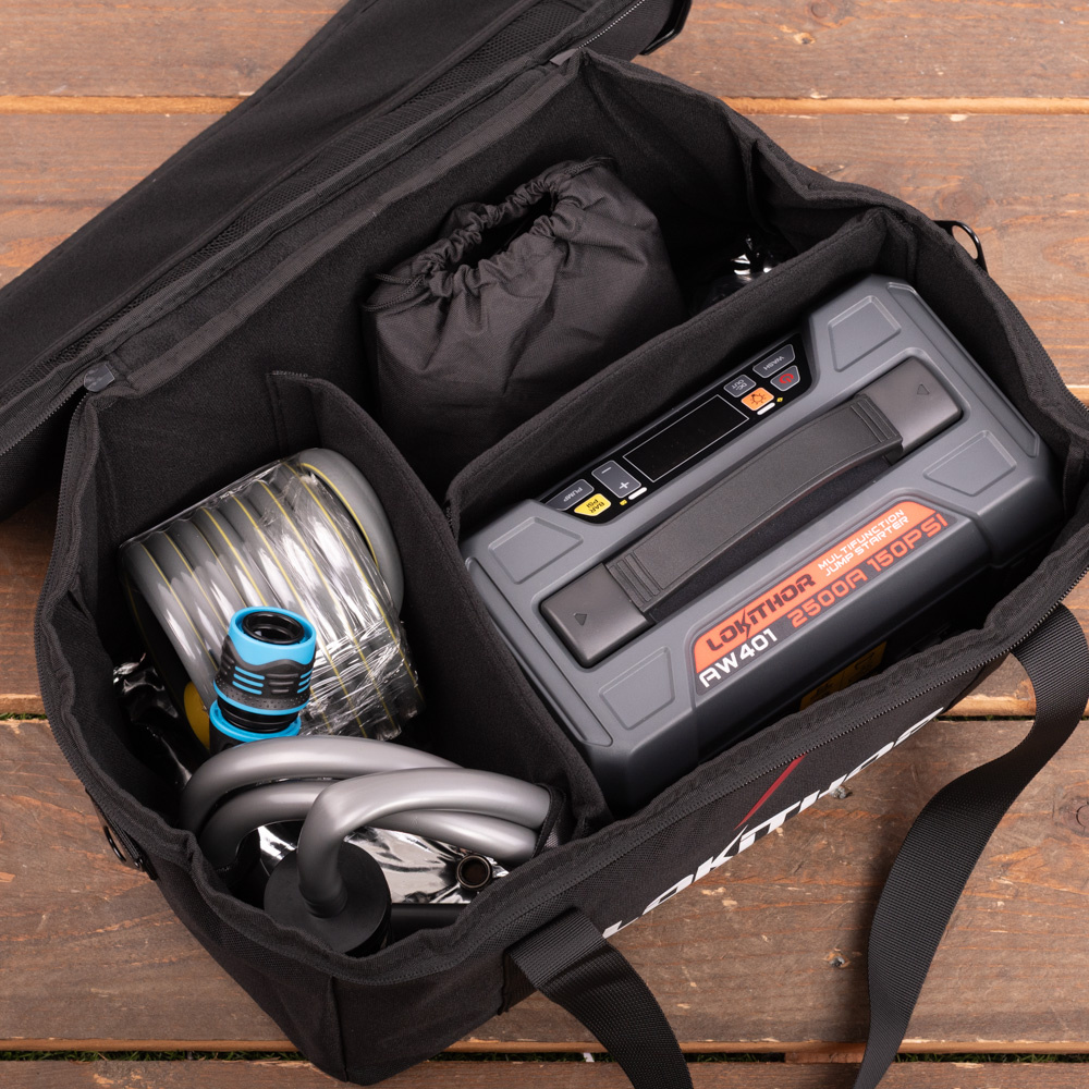 Deze opbergtas is speciaal ontworpen voor de Lokithor AW401. Er is genoeg ruimte voor alle accessoires die meegeleverd worden bij de AW401. De tas wordt geleverd inclusief schouderband.