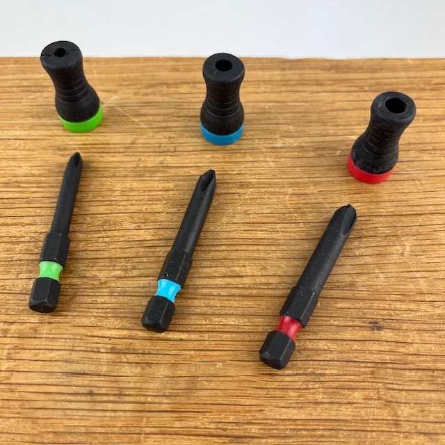 De verschillende kleuren magnetische bits passen op een verscheidenheid aan schroevendraaiers. Ze passen natuurlijk op de meegeleverde schroevendraaiers, maar ook op veel standaard schroevendraaiers en lange schroefbits voor een accuschroefboormachine.