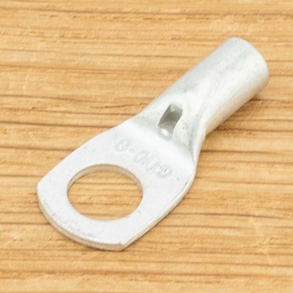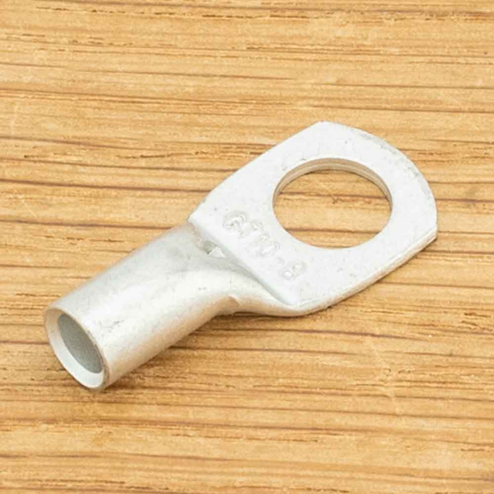 Dit ongeïsoleerde perskabeloog is geschikt voor een kabeldiameter van 10mm² en heeft een aansluitoog voor M8 bouten (de diameter van het gat is 8,4mm). U kunt de aansluiting isoleren met krimpkous. Zie hiervoor de gerelateerde producten onder de productomschrijving.