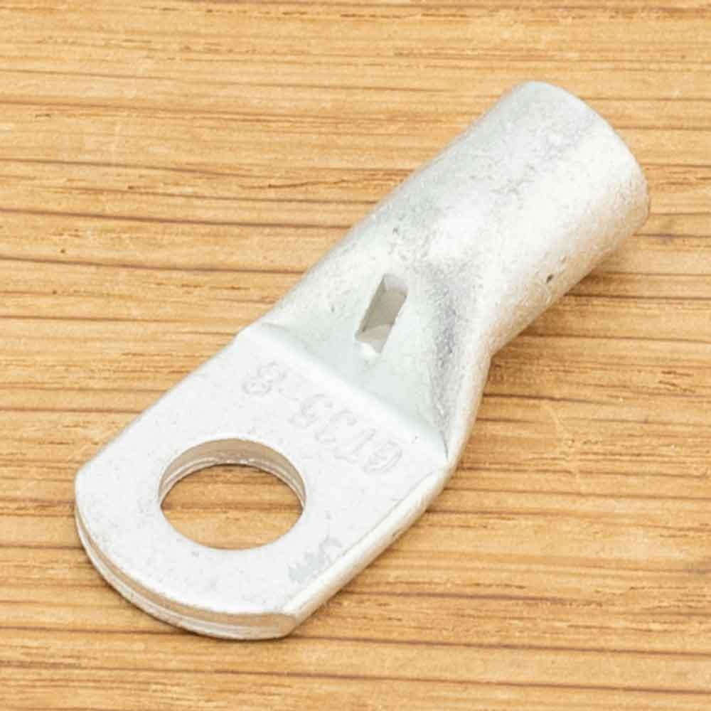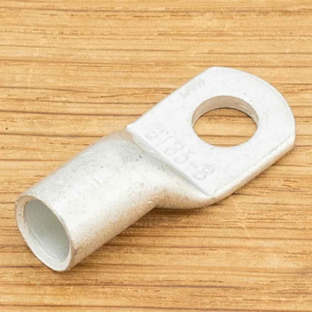Dit ongeïsoleerde perskabeloog is geschikt voor een kabeldiameter van 35mm² en heeft een aansluitoog voor M8 bouten (de diameter van het gat is 8,4mm). U kunt de aansluiting isoleren met krimpkous. Zie hiervoor de gerelateerde producten onder de productomschrijving.
