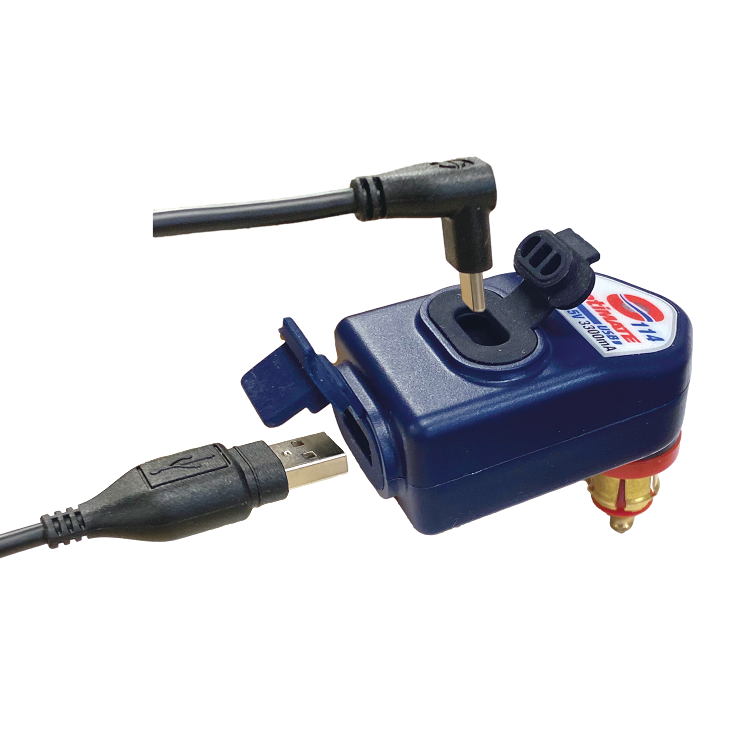 Laad uw telefoon, gps-systeem, camera of tablet op via de motorstekker van uw motorfiets van BMW, Victory, Triumph of uw quad van John Deere uitgerust met een MOTOR- (DIN)-stroomingang van 12 mm Ø. En met deze nieuwe USB lader van Tecmate heeft u een vermogen van 3.300mA en twee USB uitgangen (USB-C + USB-A).