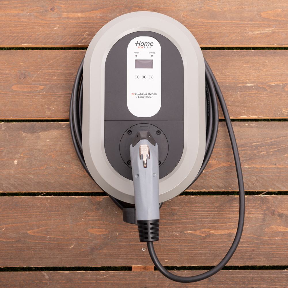 Hoge kwaliteit laadbox Ratio Home Box Plus met vaste type 1 laadkabel geschikt voor 1 fasig 16A opladen van uw elektrische auto.
