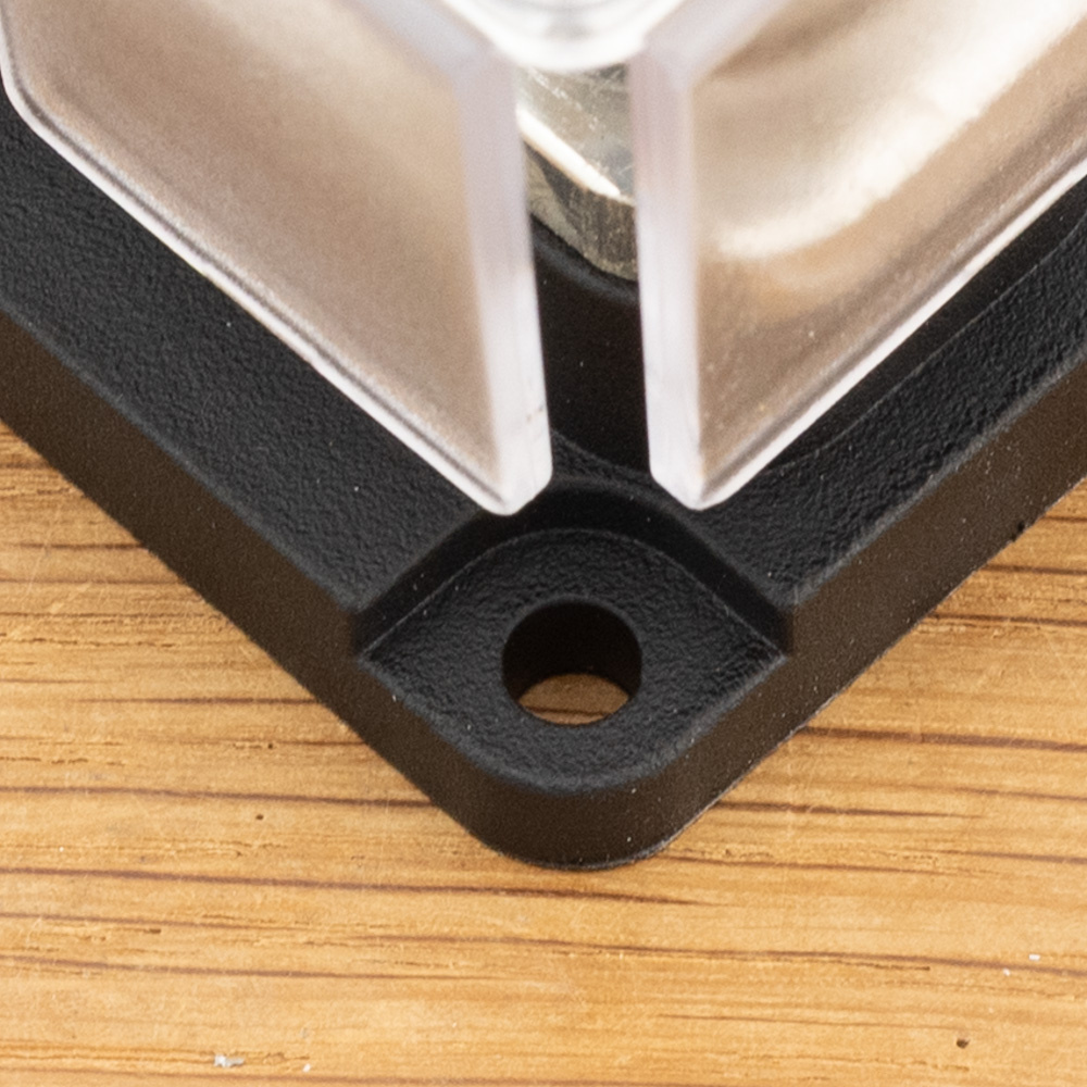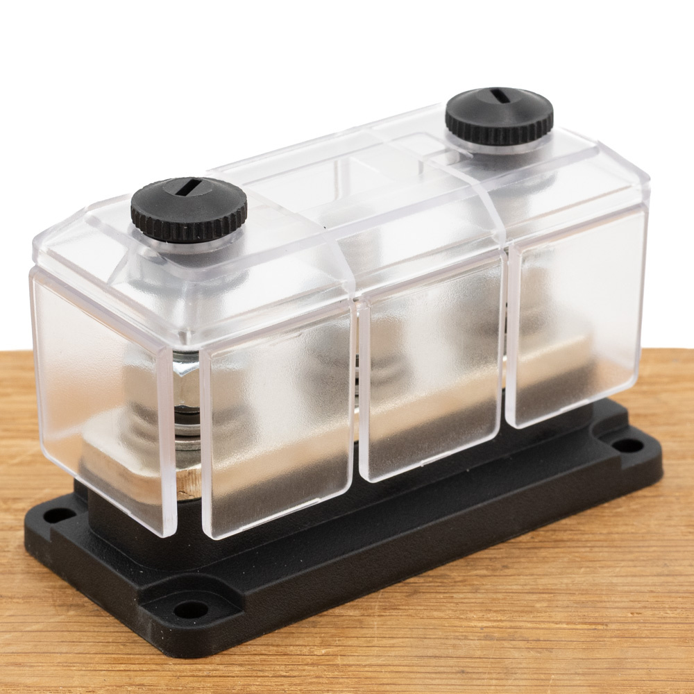 Met deze busbar heeft u verdeelpunt van 3 x M10 in uw gelijkstroominstallatie. De busbar is uitgevoerd met M10 bouten en een afschroefbare afdekkap. De afdekkap bestaat uit afbreekbare kabeldoorvoeren zodat u nette aansluitingen kunt maken.
