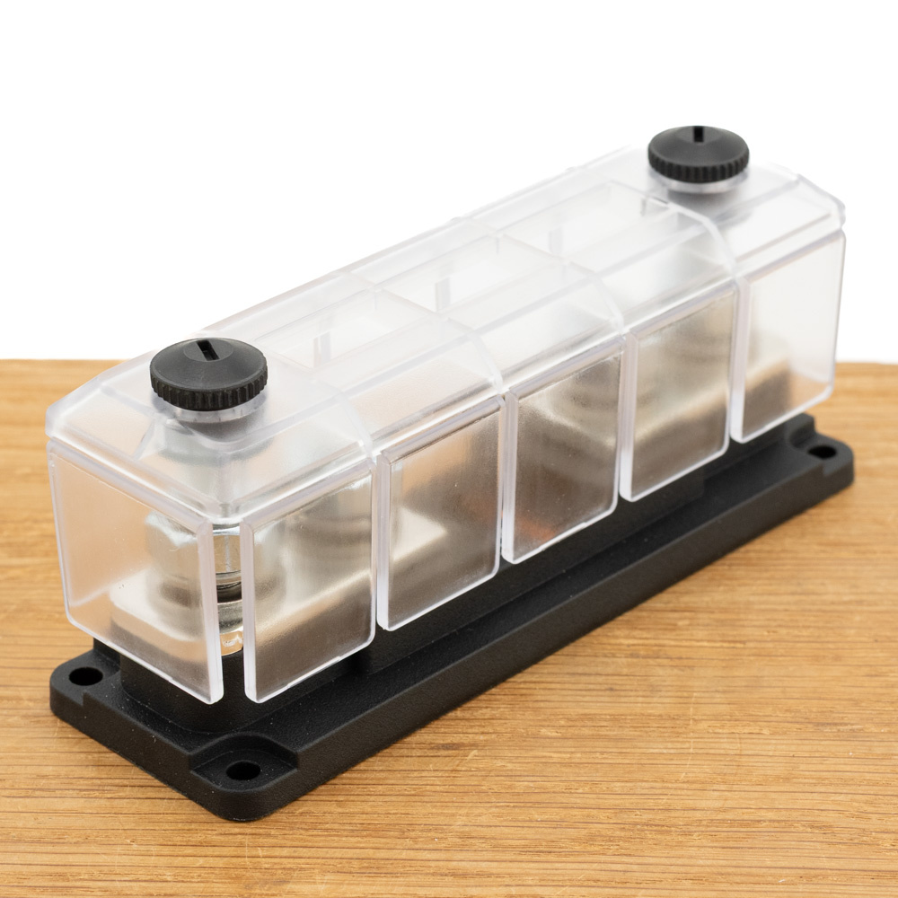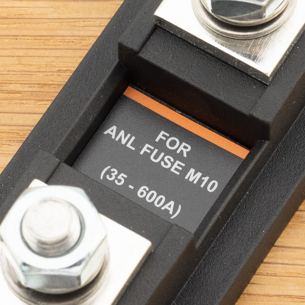 Deze TBS DCM zekeringhouder/ ANL Fuseholder is geschikt voor een ANL zekering van 35-600A. De bouten voor de zekering en aansluitingen zijn M10. De zekeringhouder is uitgevoerd met afneembare kap.