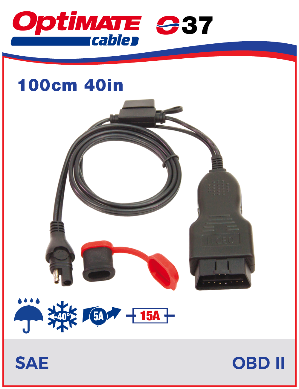 Met deze O-37 (O37) adapter van Optimate kunt u uw accu opladen en onderhouden via de ODBII aansluiting op uw voertuig. Ook kunt u accessoires met een SAE aansluiting (zoals bijvoorbeeld de monitoren O122, O123 en O125) koppelen aan uw accu/ voertuig via deze accessoire.
