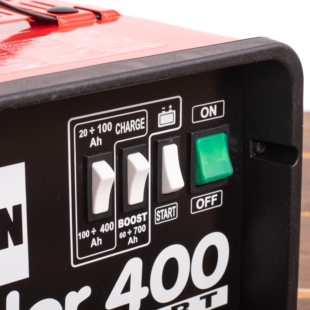 De Leader 400 is geschikt voor 12V en 24V accu’s van 20Ah tot ongeveer 700Ah.