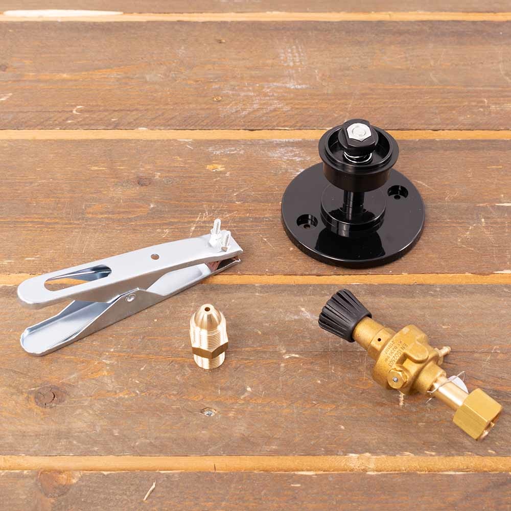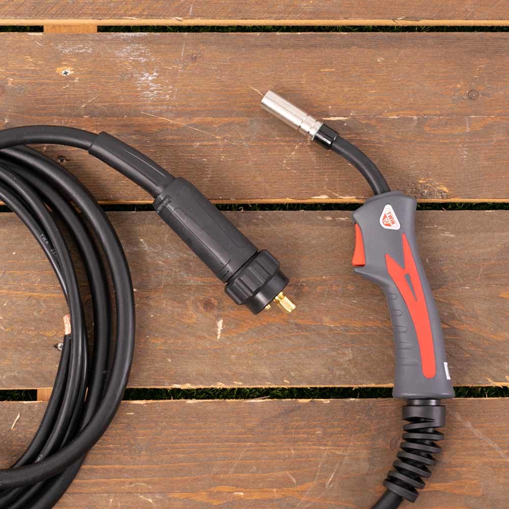 De Telwin Maxima 200 wordt geleverd inclusief MT15 MIG TORCH 3M (rood), kabel met aardklem, de Toledo 250 werkklem 250A, gasregulator/ reduceerventiel voor gasfles en een haspel voor lasdraad.