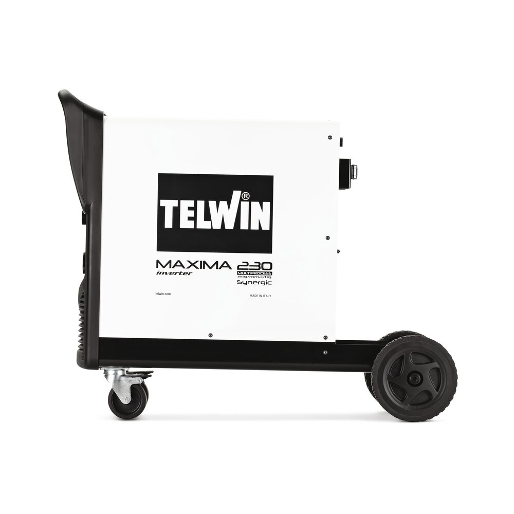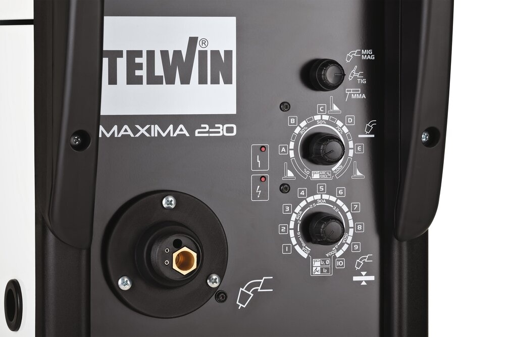 De Telwin Maxima 230 Synergic is een microprocessor gestuurde draadlasser en geschikt voor MIG-MAG, Flux, Brazing (hardsoldeer), TIG en MMA lassen op basis van invertertechnologie. De Maxima 230 Synergic is daarmee zeer breed inzetbaar. Dit lasapparaat kan lassen met MIG-MAG, FLUX (gevulde draad) en BRAZING (hardsoldeer) technieken en is daarmee dan ook geschikt voor vele lasmaterialen zoals staal, roestvrij staal en aluminium. Verder kunt u met dit lasapparaat dus ook gewoon met elektroden lassen met elektroden (DC) van 1,6 tot 3,2 mm.