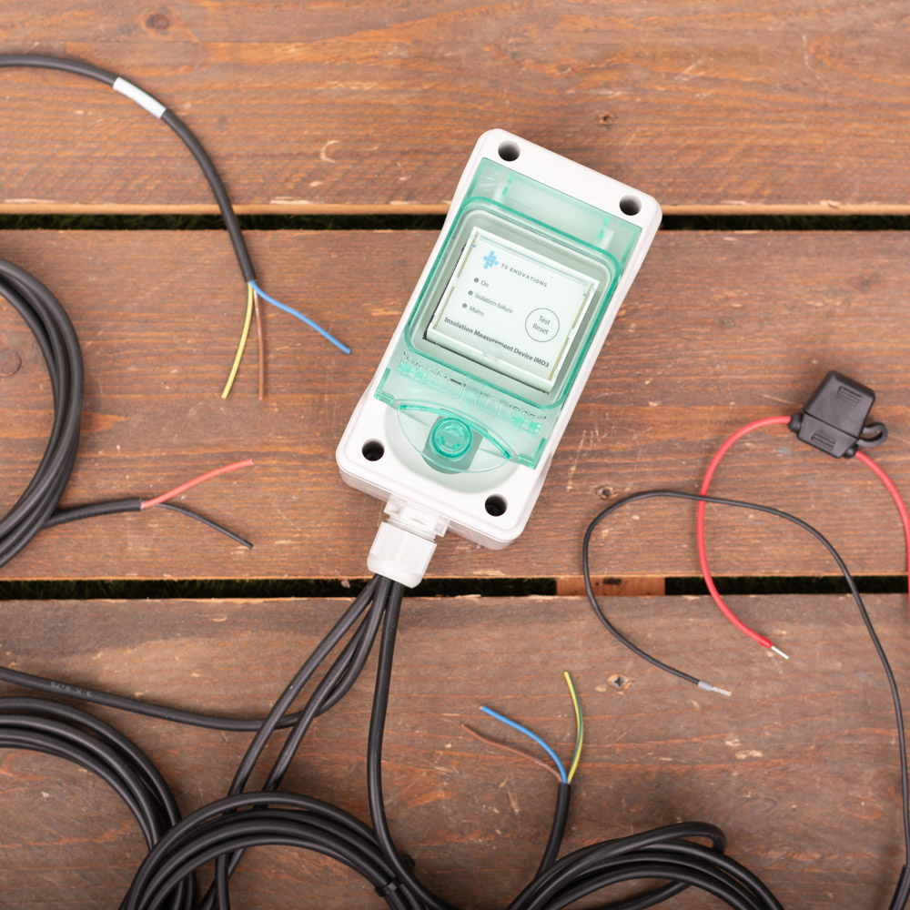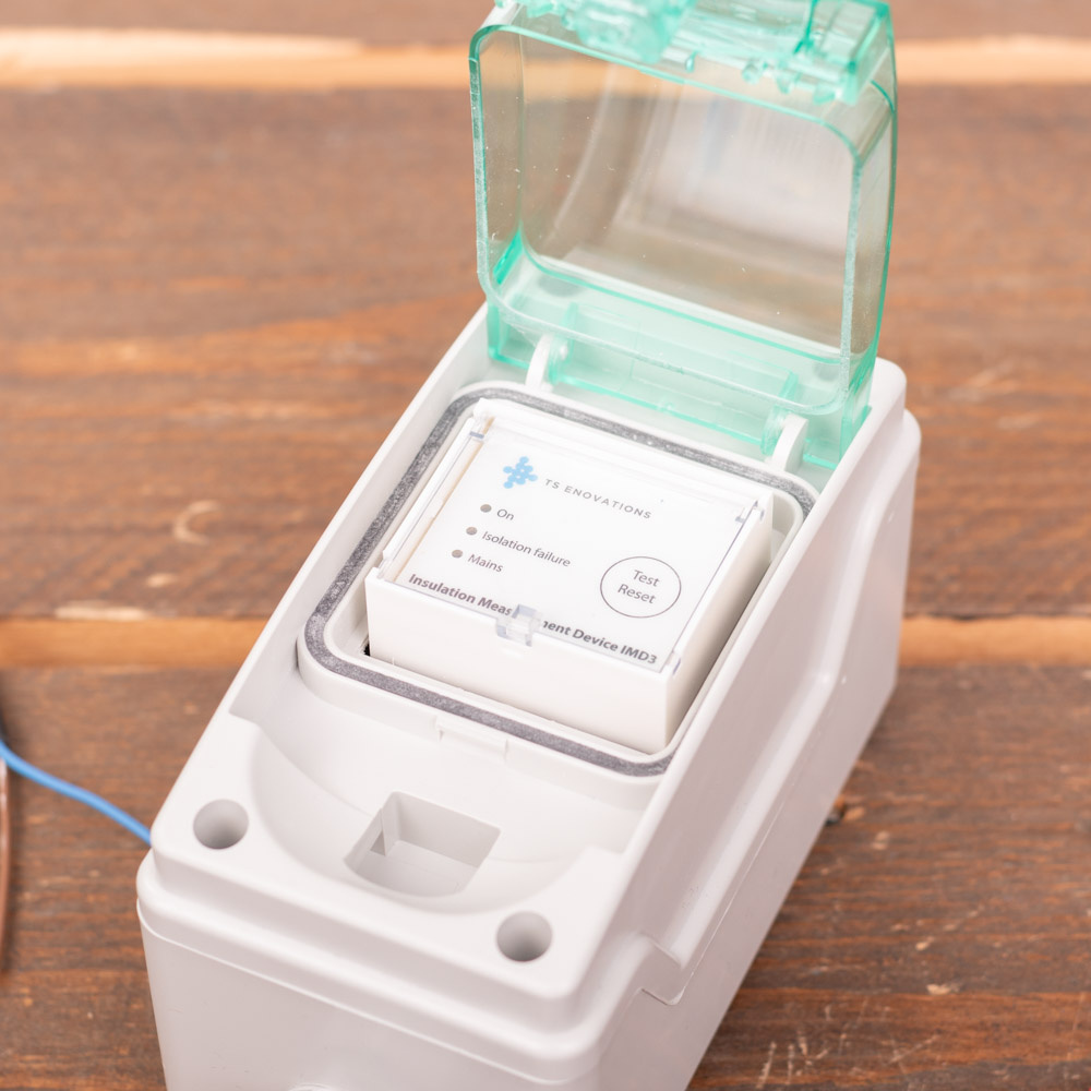 De isolatiebewaker zet een spanning op leidingen die de stroom geleiden, en meet deze stroom/spanning doorlopend. Daarbij zal het heengaande spanningssignaal gelijk moeten zijn aan het terugkerende signaal. Is dit niet het geval? Dan zal de IMD3 isolatiebewaker dit direct opmerken en ook direct de 230V spanningsdoorvoer uitschakelen.