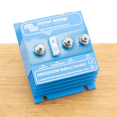 De Victron Argodiode 80-2AC is uigevoerd met een zogenaamde "dynamo ‘energize’ aansluiting". Deze aansluiting is nodig voor sommige dynamo’s omdat die alleen beginnen met laden indien er spanning aanwezig is op de B+ aansluiting. Wanneer de dynamo direct op een accu is aangesloten, zal er spanning op de B+ aansluiting staan. Een diode of FET laadstroomverdeler isoleert echter de accu’s van de dynamo zodat deze het laden van de accu's niet zal starten. Deze Victron Argo diode laadstroomverdeler heeft een aparte ‘Energize’ aansluiting waarmee spanning op de B+ aansluiting gezet kan worden als het contactslot van de motor in de contactstand gezet wordt. In de gebruiksaanwijzing bij het apparaat staat duidelijk uitgelegd hoe u deze aansluiting kunt maken.