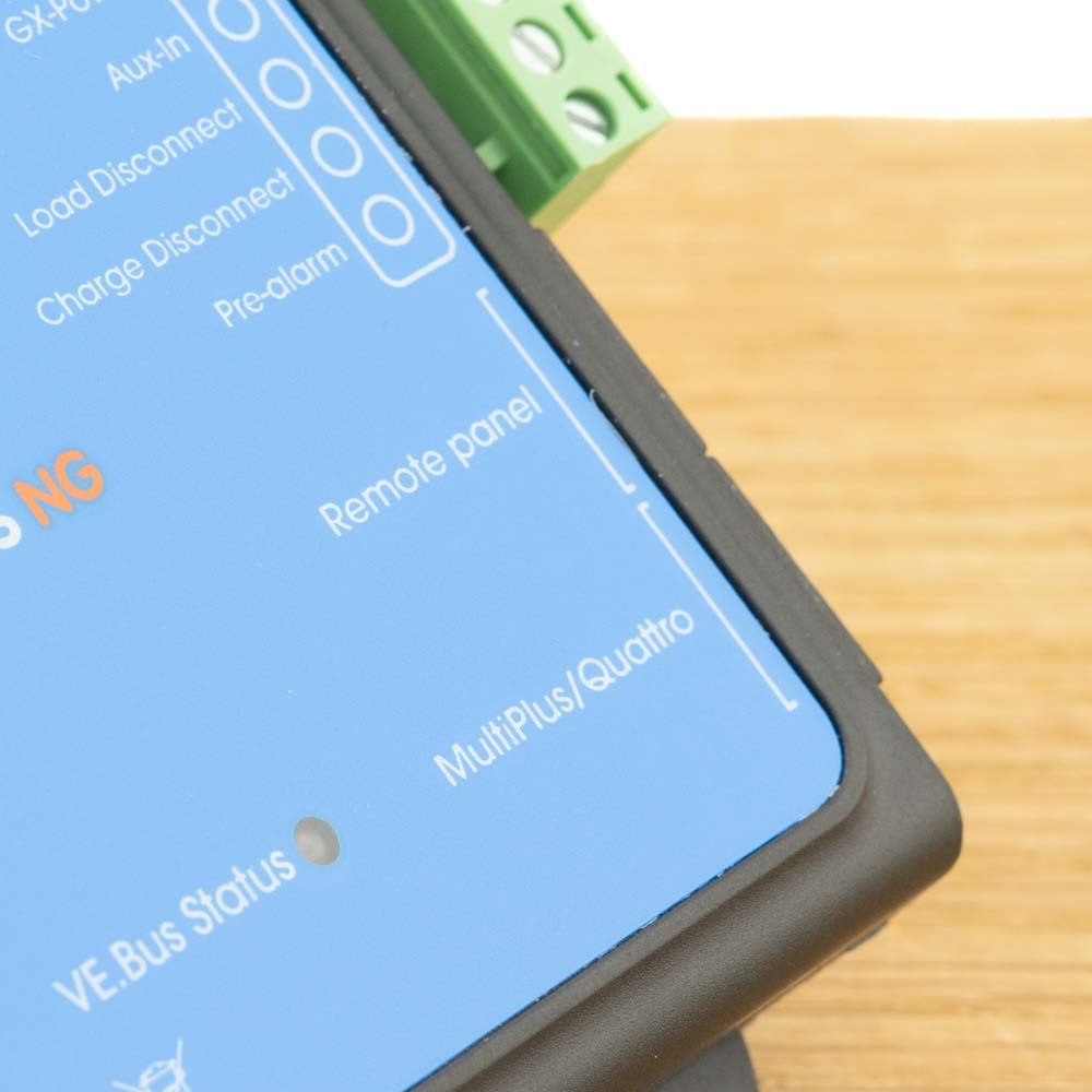 VE.Bus-communicatiepoort: 2 RJ45-bussen om alle VE.Bus-producten aan te sluiten