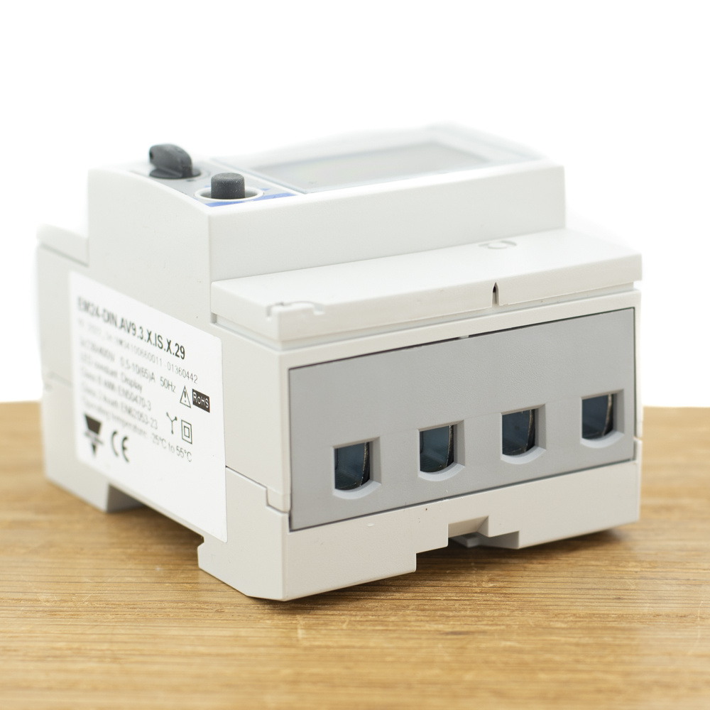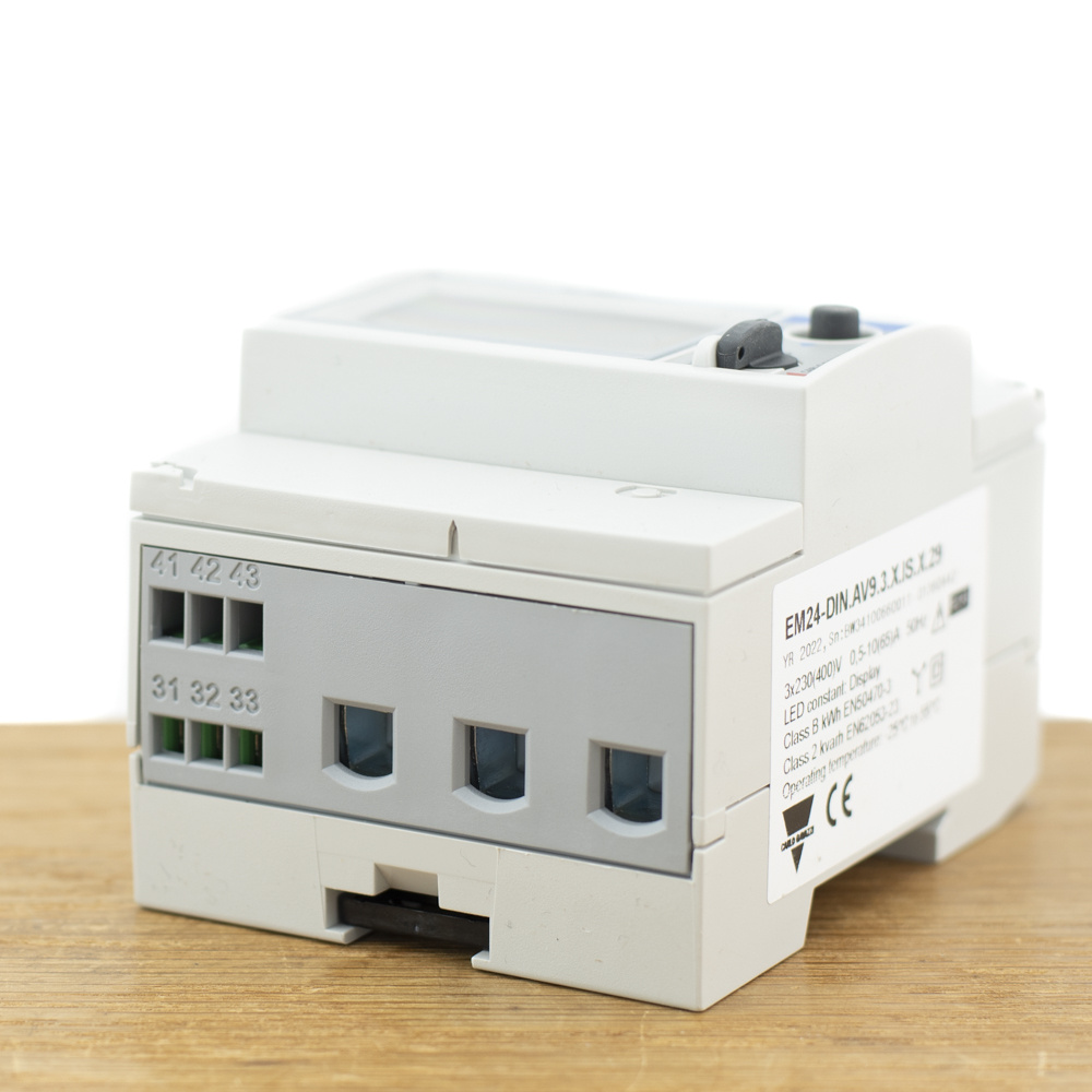 De Victron EM24 energiemeter is een type EM24 DIN driefase-energiemeter. Deze energiemeter is geschikt voor maximaal 65A per fase en is gemakkelijk te bedienen met een joystick aan de voorzijde van het apparaat en LCD-gegevensweergave.