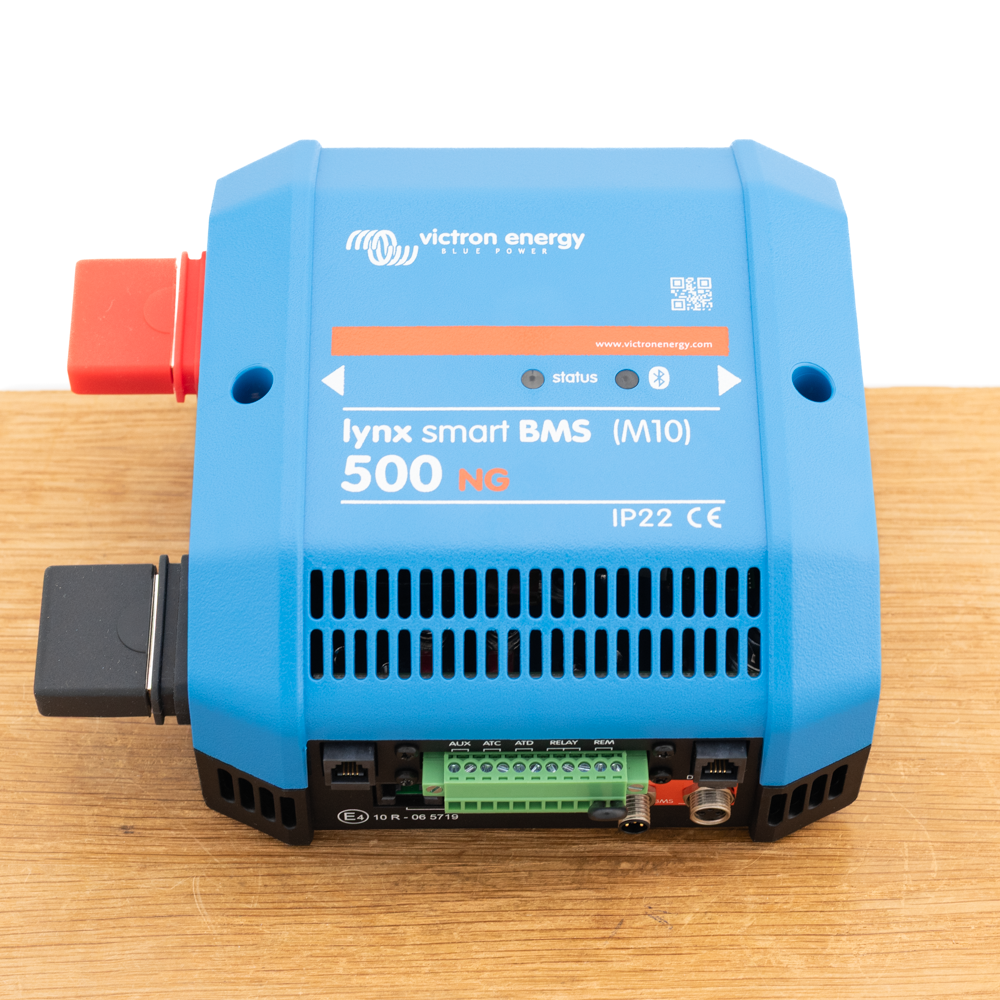 Het Victron Lynx Smart BMS 500 NG (M10) is een batterijbeheersysteem (BMS) voor Victron Lithium NG accu's. Het maakt onderdeel uit van het Lynx-distributiesysteem. Het Lynx-distributiesysteem is een modulair railsysteem dat DC-aansluitingen, distributie, afzekering, batterijbewaking en/ of lithiumbatterijbeheer omvat.