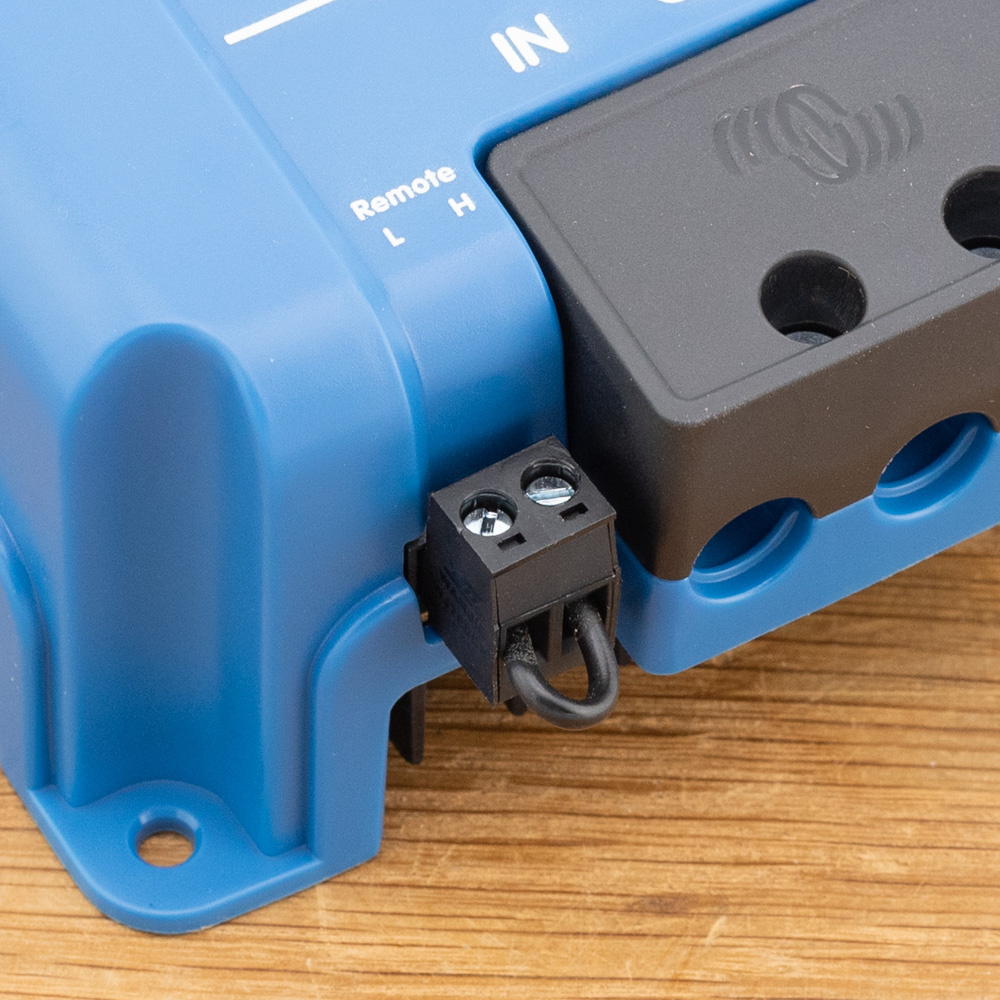 De aan-uit op afstand maakt de noodzaak van een relais in de ingangsbedrading overbodig. De aan-uit op afstand kan worden bediend met een laagvermogen eenvoudige schakelaar of via het contactslot van het voertuig of vaartuig. Hanteer de gebruiksaanwijzing voor de juiste schakeling.