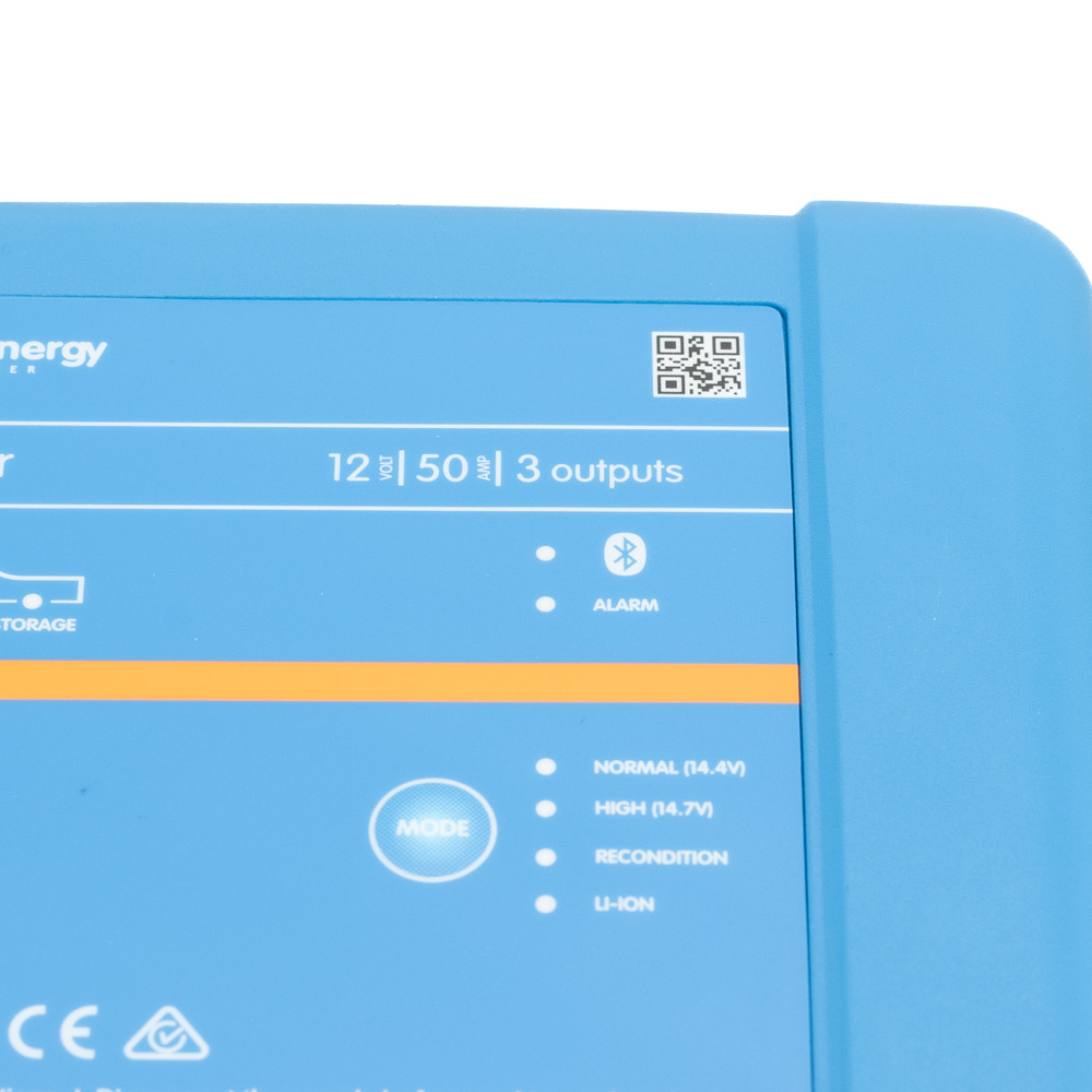 Het laadalgoritme kan worden ingesteld met behulp van Bluetooth en de Victron app of de VE.Direct interface. Met de modusknop kunnen drie voorgeprogrammeerde laadalgoritmes worden gekozen.
