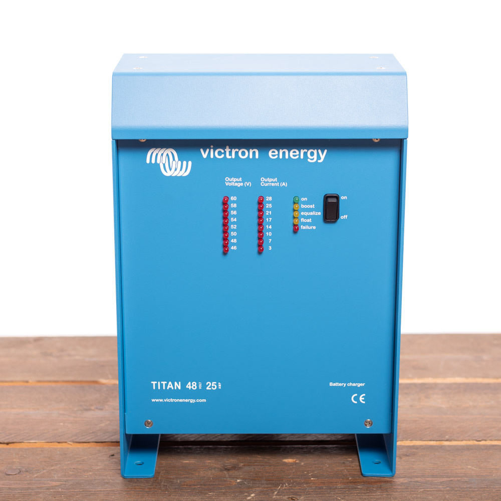 De Victron Skylla-TG 48/25 is geschikt voor alle soorten 48V accu's van 125 tot 250 Ah. De laad-spanning kan namelijk aangepast worden aan elk type open of gesloten accu.