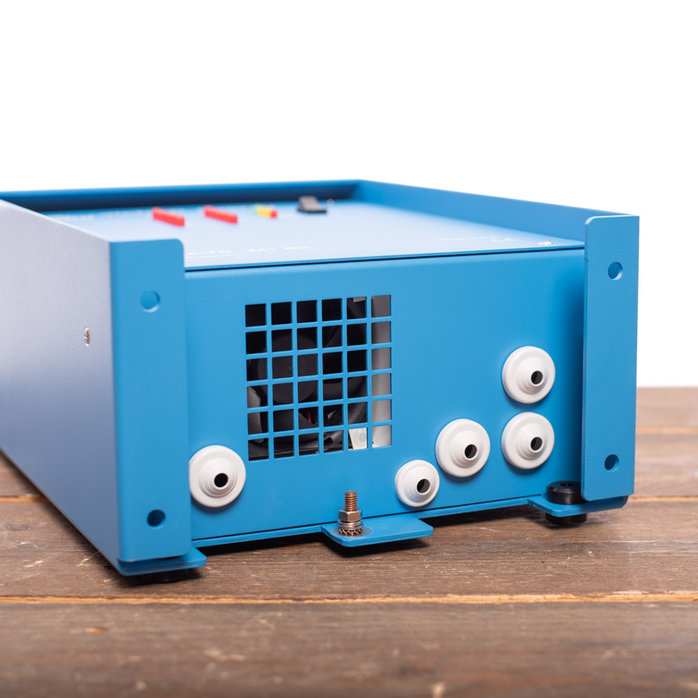 De Victron Skylla-TG 48/25 is een veelzijdige krachtige 48V acculader. De Skylla-TG is licht en compact en de laad-spanning kan aangepast worden aan elk type open of gesloten accu. De Skylla-TG wordt veel toegepast in situaties waar snel en veilig acculaden van belang is. Vooral voor gesloten, onderhoudsvrije accu’s is een stabiele laadspanning erg belangrijk. Overspanning leidt tot overmatig gassen en uitdroging. De Skylla-TG biedt deze stabiele laadspanning.
