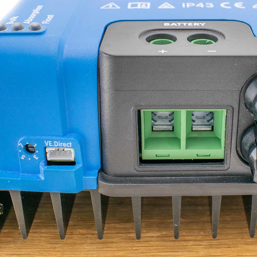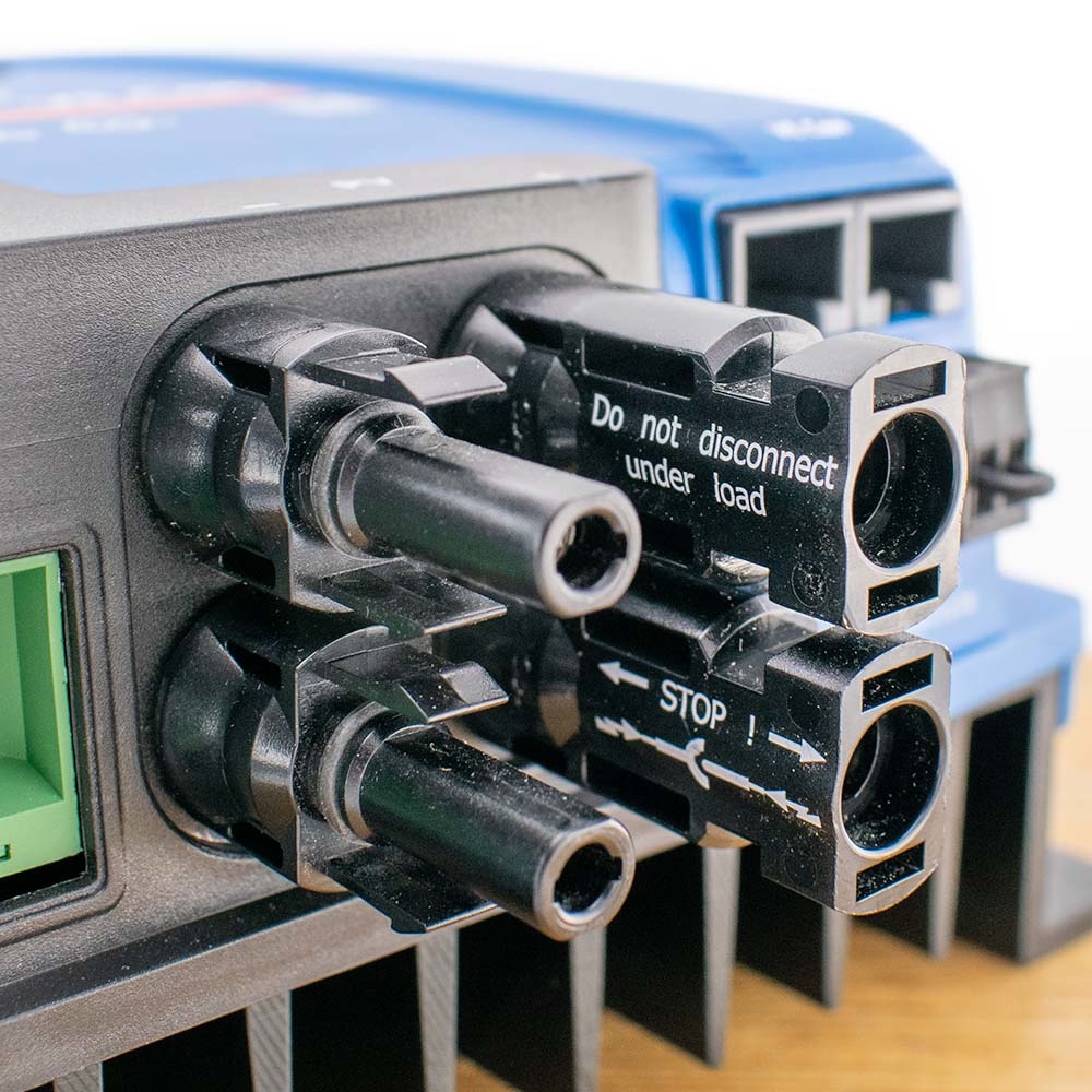 Deze MPPT laadregelaar van Victron is uitgerust met 2 MC4 aansluitingen. U kunt hierop 2 sets van zonnepanelen aansluiten van maximaal 250V elk aansluiten. U kunt hierbij gebruik maken van de MC4 stekkers.