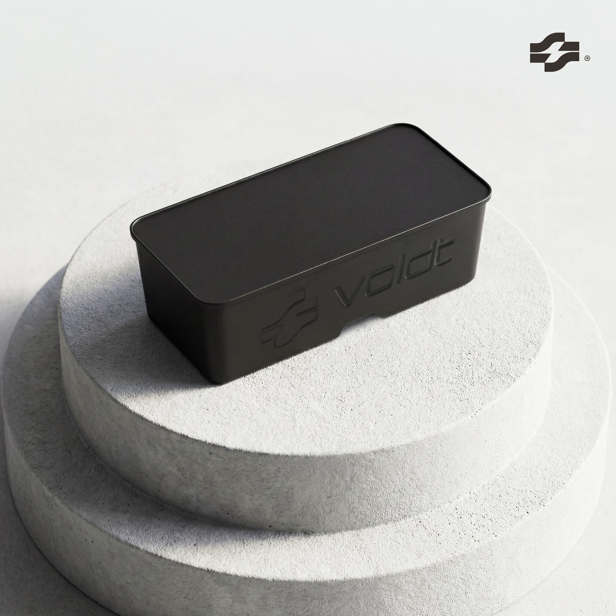 De behuizing van de Voldt Boxx is gemaakt van gerecycled plastic en afgewerkt met een metalen frontpaneel. Dit zorgt voor een sterke constructie en een strakke, moderne uitstraling. Dankzij het magnetische vergrendelmechanisme blijft de box goed gesloten zonder ingewikkelde sluitingen of sleutels.