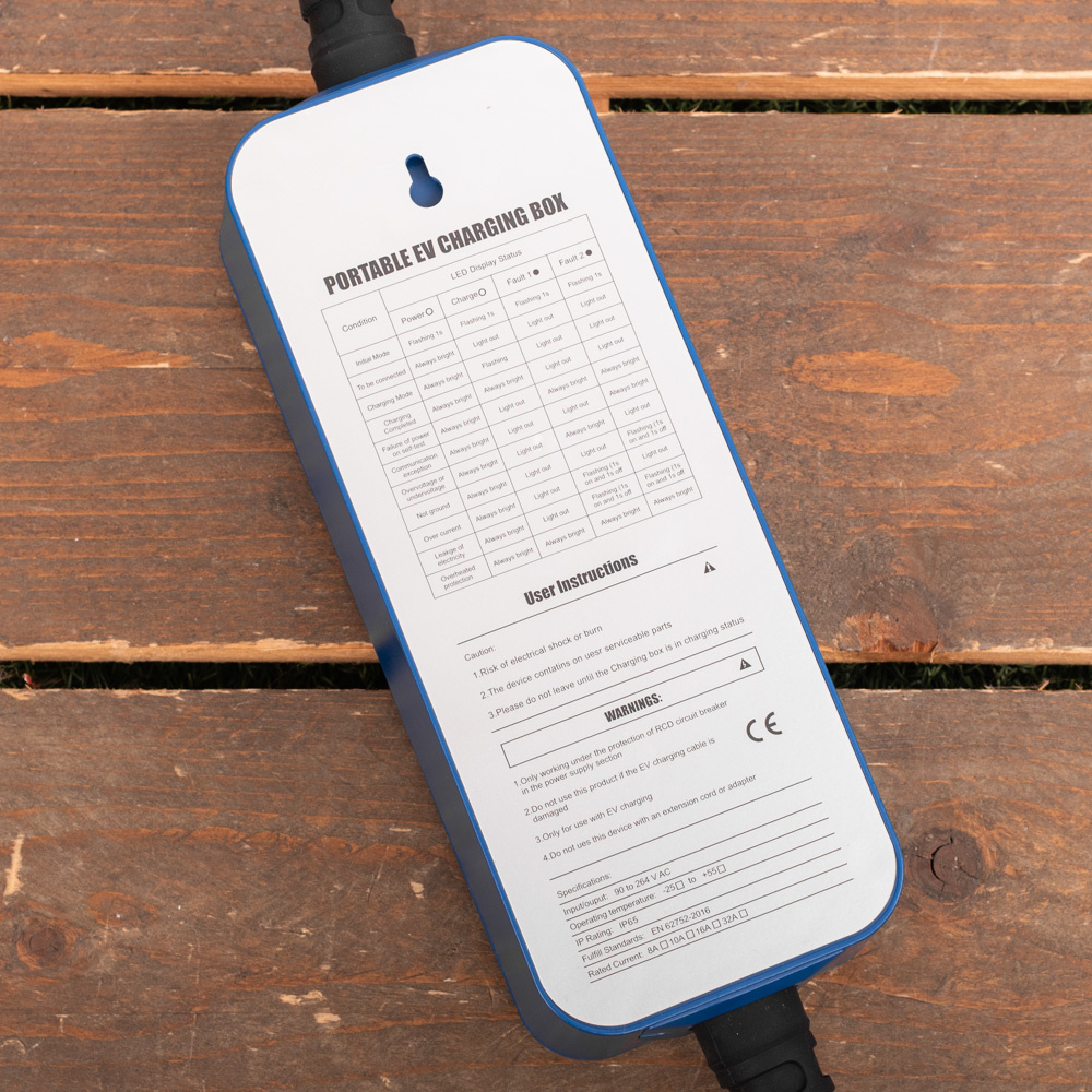 De mobiele lader is beveiligd tegen overstroom, tegen onder- en overspanning en een aardlek beveiliging van 20mA. De lader heeft ook een auto-herstart functie voor het geval het laden onderbroken wordt om wat voor reden dan ook.