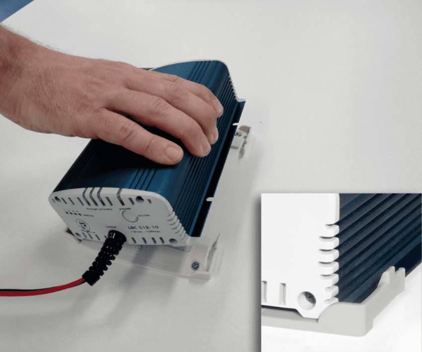 Dit artikel bestaat uit twee klemmen waar u de Xenteq LBC lader gemakkelijk in en uit kunt klikken. De lader kunt u zo gebruiken voor vaste montage maar ook weer gemakkelijk meenemen.