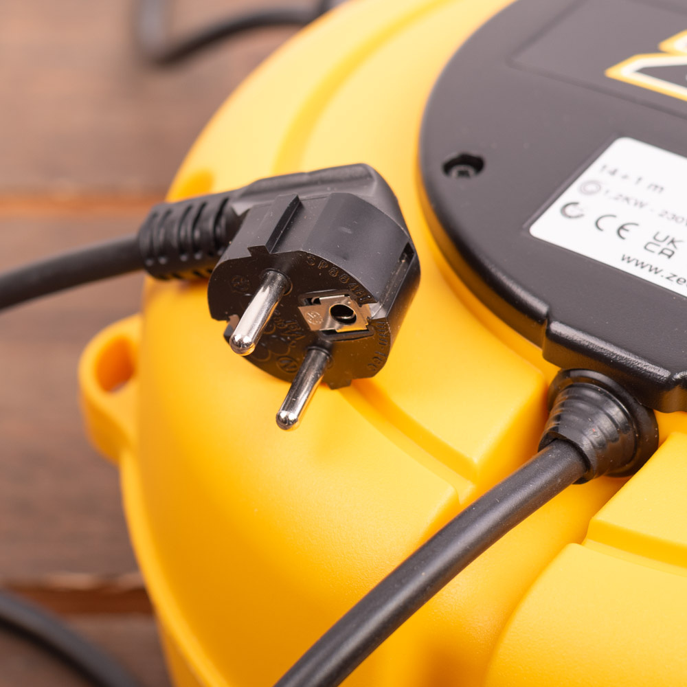 Voeding: de haspel heeft een vaste Schuko kabel voor aansluiting op het 230V net.